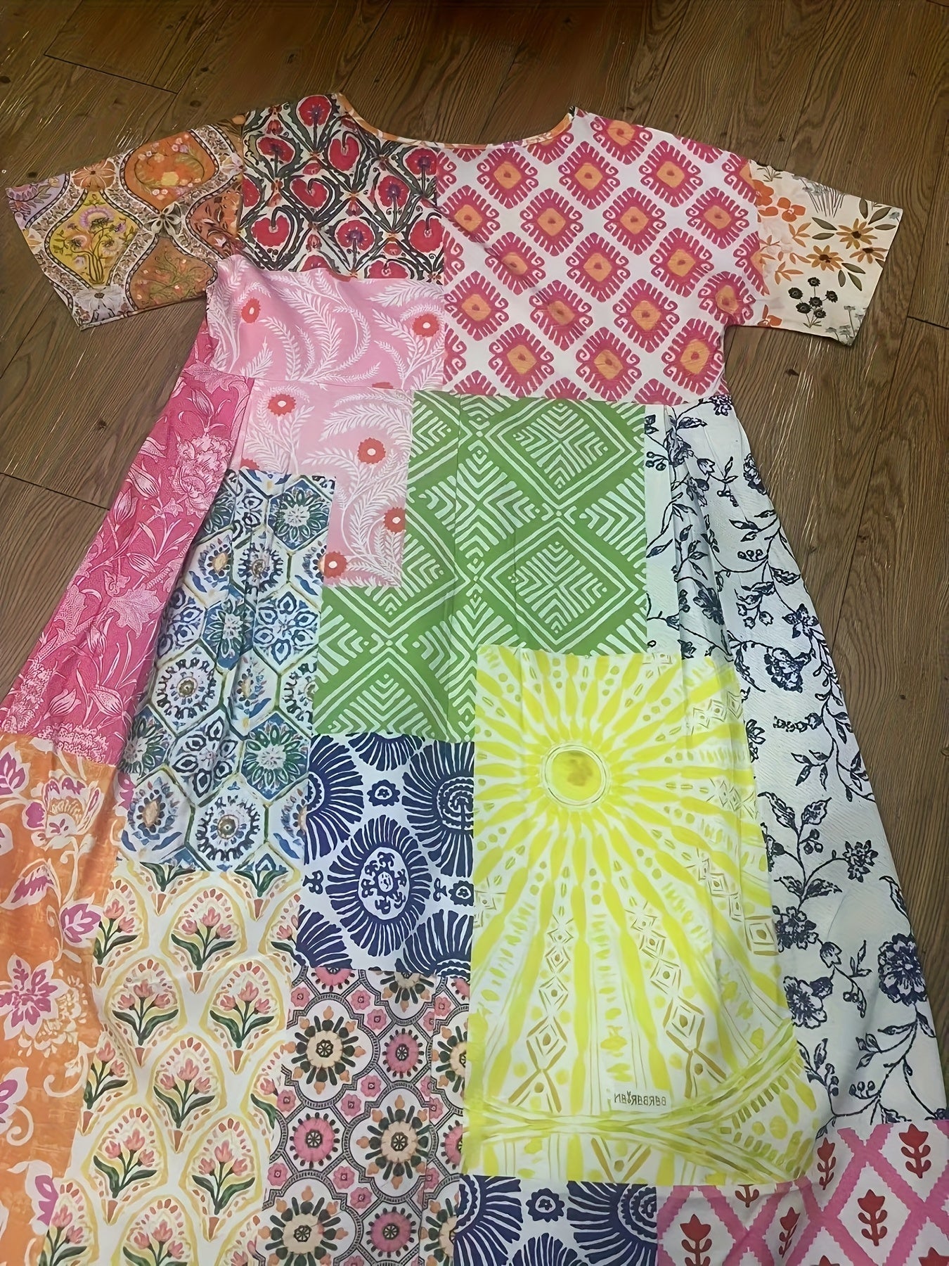 This artfully designed maxi dress features a flowing silhouette and patchwork prints bursting with personality. With its mosaic of motifs, relaxed fit, and lightweight drape, Nina brings together comfort and creativity in one unforgettable summer piece.