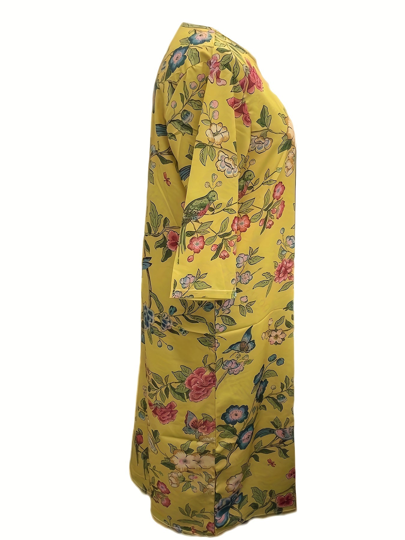 • Style: Loose-fit maxi dress with ¾ sleeves